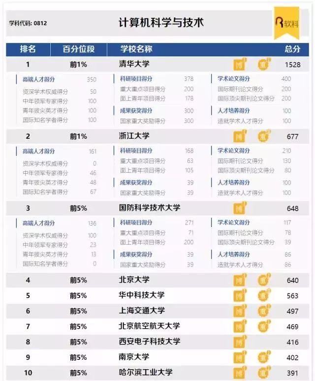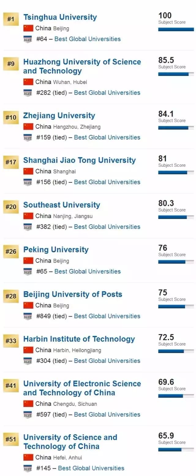 上面的这些排行主要针对各高校的综合实力排行,下面我们一起来看下各高校计算机专业方面的实力。为了尽可能的公平公正,我们特意选取了国内、国外两份榜单作比较