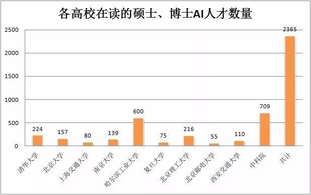 各个高校的实验室中,中科院、哈工大、清华在读的硕士、博士数量最多,但是这十几个学校在读的硕博人才加起来有2300多人。其中,中科院是中国输出高端AI人才做多的机构之一。
