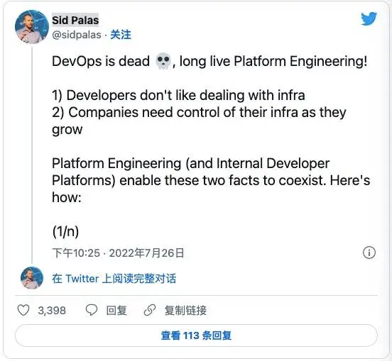 最近, Scott Carey 发表了一篇调查文章,喊出了一些开发者的心声:“扯淡的 DevOps,我们开发者根本不想做运维!”除此之外,软件工程师兼 DevOps 评论员 Sid Palas 也在推特上写道,“DevOps 已死,平台工程才是未来。”