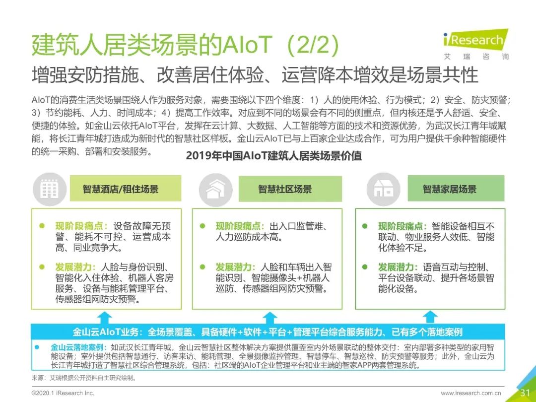 近日,艾瑞咨询与金山云联合发布《2020年中国智能物联网(AIoT)白皮书》。白皮书对未来AIoT的应用愿景进行了描绘,对行业应用场景及发展空间进行了分析,旨在将向市场提供更多的参考依据。