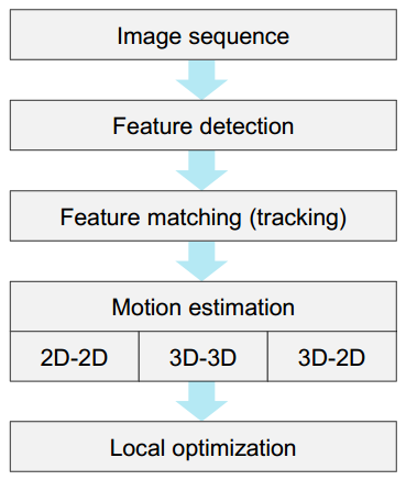 特征点法VO流程 (Davide Scaramuzza and Friedrich Fraundorfe, 2011)