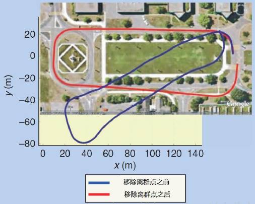 之前估计的视觉里程计轨迹与移除离群点之后的对比