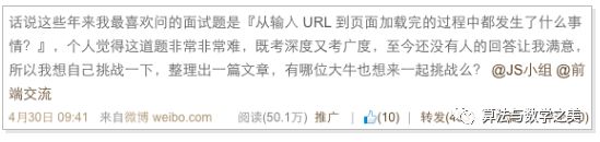 @JS小组:[哈哈] 小编想起来了,貌似刚从业那会儿,前端界最美丽的姐@sherrie_wong 面试问过小编这道题.然后我当时把知道的全说了,从浏览器解析,发请求,7层网络模型实际用的模型,TCP三次握手.经路由,交换机,DNS,到服务器.在是否需要与文件系统还是数据库打交道,再者分布式运算hadoop啥的…聊了太多.