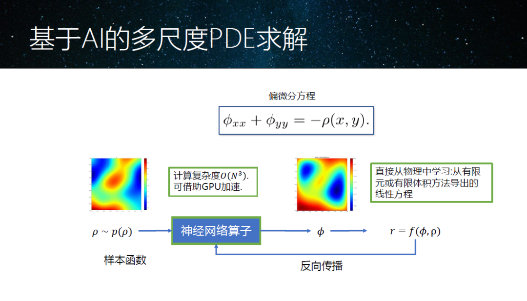 我们提出了一个基于神经网络来学习求解多尺度偏微分方程的算子,它不需要大量的训练数据,可以直接从物理规律中学习,同时还可以通过 GPU 加速,使解题速度比传统的数值解法提高几个数量级。利用这样的新技术,在精度与传统数值解法相当的情况下,我们以10倍的速度成功求解了描述大气湍流的大规模纳维-斯托克斯方程,这对于环境建模、气候预测都可能产生革命性的影响。