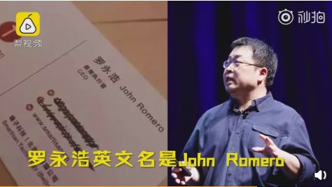 另外罗永浩有很多别名,很多网友喜欢称呼他老罗、罗玉龙、龙哥......,但其实他也有英文名,叫John Romero。据说这个名字同名与约翰·罗梅洛,一位90年代人游戏界的明星制作人,但他性格偏执自傲喜欢在媒体面前大放厥词,最后因个人判断失误导致公司支零破碎。之后有知乎网友曾经将约翰·罗梅洛同老罗对比讨论,被老罗看见,老罗回应称“正好当时没有英文名,所以干脆就这么叫了”。这个由来,很老罗了。