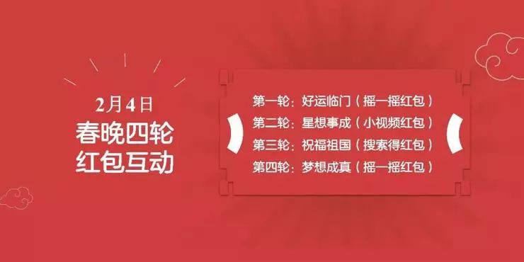 集好运卡、团圆红包两个主题活动从1月28日小年开始,一直持续到2月4日除夕。同以往一样,春节红包持续8天,春晚红包分四轮发放。