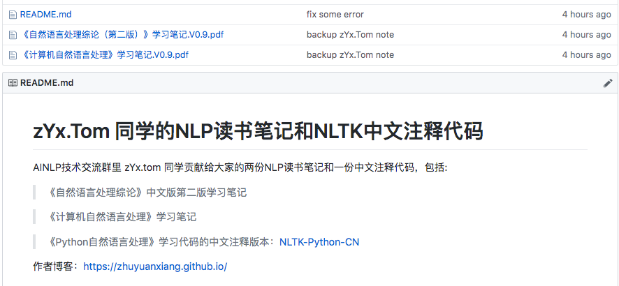 推荐一下AINLP技术交流群里 zYx.tom 同学贡献给大家的两份NLP读书笔记和一份中文注释代码,包括: