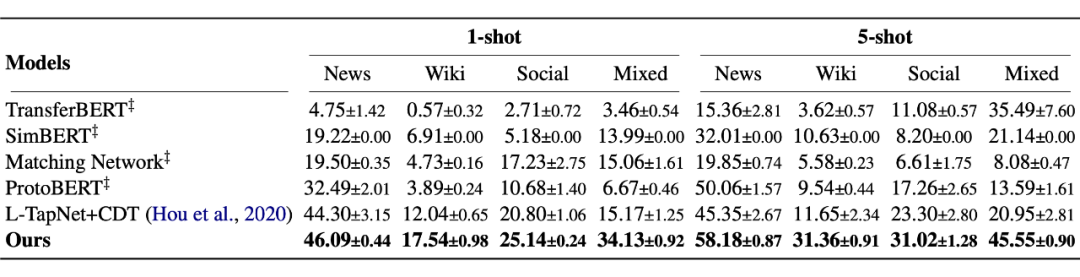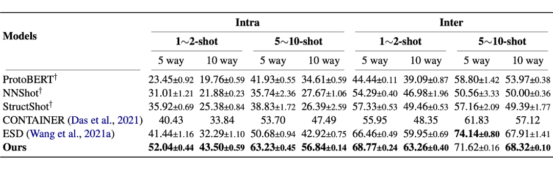 本文提出了一个两阶段的模型,跨度检测和实体分类来进行小样本 NER 任务,两个阶段的模型均使用元学习 MAML 的方法来进行增强,获取了更好的初始化参数,能够使模型通过少量样本快速适配到新域中。本文也算是一篇启发性的文章,在指标上可以看出,元学习的方法对小样本 NER 任务有着巨大的提升。
