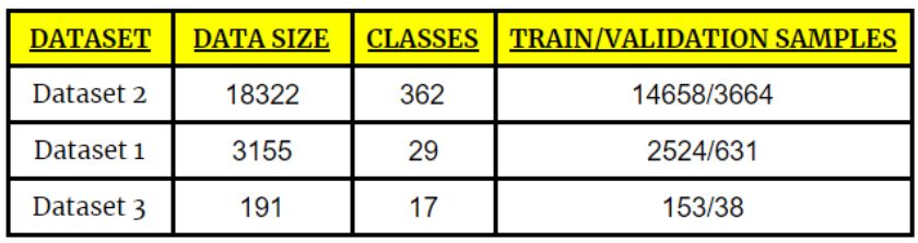 我们使用3种类型的数据集,其中包含多种类别,如下表所示: