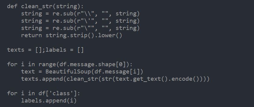 在本节中,我使用了一个简化的CNN来构建分类器。首先,使用Beautiful Soup来删除一些HTML标签和一些不需要的字符。