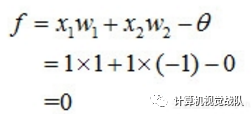 类似地,经过激活函数(阶跃函数)处理后,输出结果y=0,判定也正确的!BINGO!误差ep为0,打完收工,学习结束!