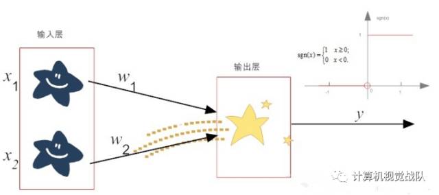 在第3小节中,我们已经提到,所谓的感知机,其实就是一个由两层神经元构成的网络结构,它在输入层接收外界的输入,通过激活函数(含阈值)的变换,把信号传送至输出层,因此它也称之为“阈值逻辑单元(threshold logic unit)”。
