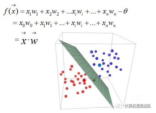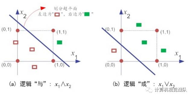 这样一来的话,对于超平面一侧的实例,感知机输出为1(或称判定为某一类),而对于超平面的另外一侧实例,感知机输出为0(判定为另外一类)。