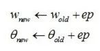 现在,我们把ep的值带入公式(5.1)所示的规则中,更新网络的权值和阈值,即:
