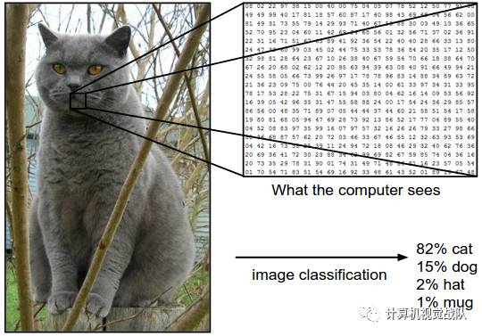 如图所示,图片被表示成一个大的3维数字矩阵。在下面例子中,图像分类的最终目标就是转换这个数字矩阵到一个单独的标签,例如“Cat”。 图片分类的任务是对于一个给定的图片,预测其的类别标签。