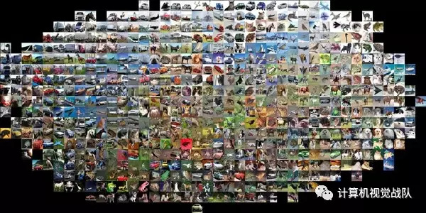 这里还有个视觉化证据,可以证明使用像素差异来比较图像是不够的。z这是一个叫做t-SNE的可视化技术,它将CIFAR-10中的图片按照二维方式排布,这样能很好展示图片之间的像素差异值。在这张图片中,排列相邻的图片L2距离就小。