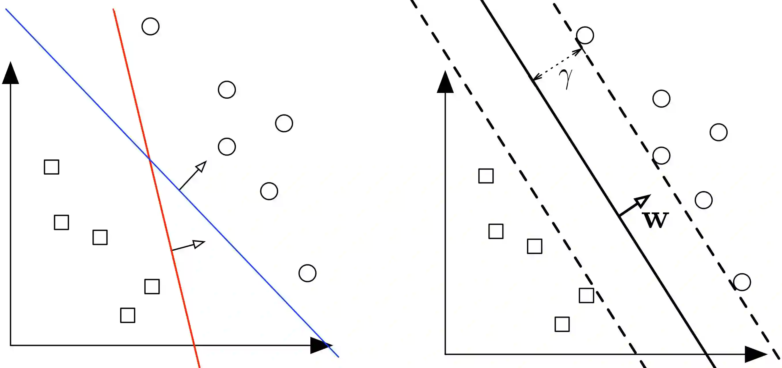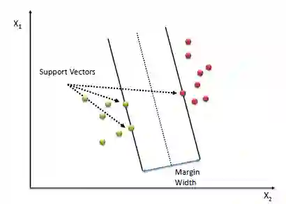 This best possible decision boundary is determined (or “supported”) by the instances located on the edge of the street. These instances are called the support vectors. The distance between the edges of “the street” is called margin.