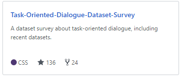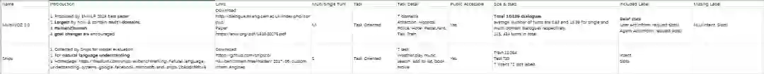 任务型对话任务并不是新课题,但是针对任务型对话的广泛研究在最近几年才兴起。任务型对话研究的方兴未艾反映在数据和语料上,就是目前现有的任务型对话数据集数量少,且其他成熟的任务已有的数据集在数据量上要少的多。 在这种情况下,尽可能多找到并有效的利用已有的数据资源就成为开展研究的关键之一。然而,搜罗并全面的寻找合适的数据集是一个费时费力的工作,所以整理统计目前已有的任务型对话领域的数据集的信息是有必要的,可以极大地为相关研究工作提供便利,让研究工作得以地快速开始。