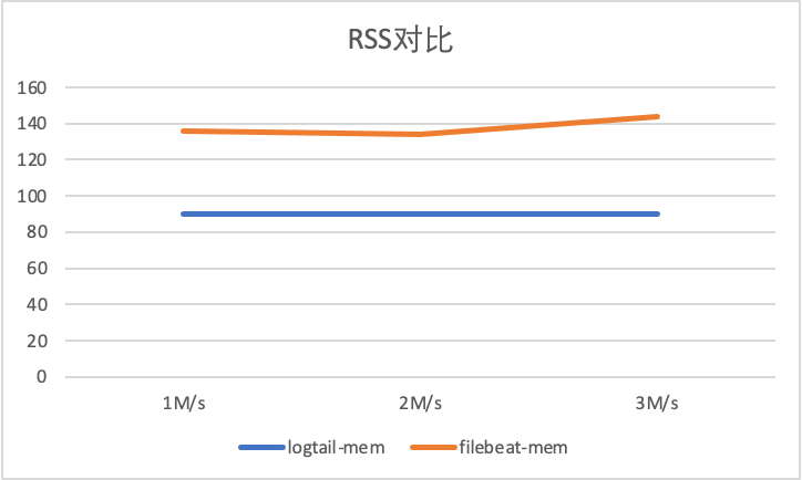 实验1:恒定采集配置4,Filebeat & iLogtail 在原始日志产生速率 1M/s、2M/s、 3M/s 下的标准输出流采集性能对比。