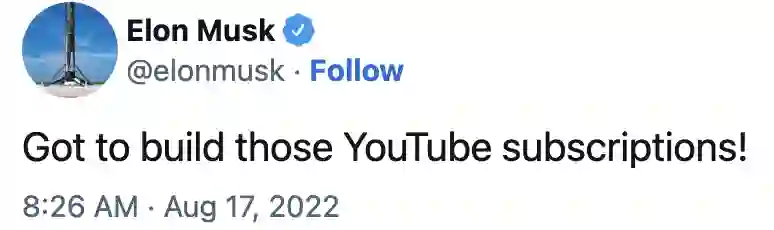 更新奇的是,连前boss马斯克都来推销他的视频了:「赶紧涨粉啊!」