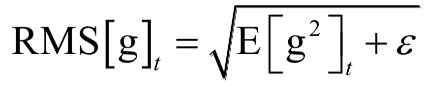在这里g2是向量每个元素分别计算平方,后面所有的计算公式都是对向量的每个分量进行。接下来计算如下RMS量: