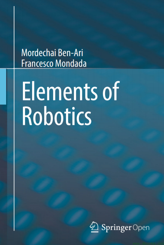 Elements of Robotics 是一本为高中生以上水平的读者写的机器人教科书。旨在弥合在学校里玩机器人与深入研究机器人学之间的市场空白和学习需求,让读者从工业和科研应用的角度了解机器人的主要研究课题。本书概述了不同类型的机器人以及用于构建机器人的组件,并侧重于介绍机器人算法。书中的算法描述只用到了高中生或者大学新生的数学知识,如微积分,代数和概率论等,深入浅出地解释了定位、绘图、图像处理、机器学习和群组机器人等高级主题算法。本书以开放获取的形式出版,自出版至今两年里已通过SpringerLink被读者下载61万多次。