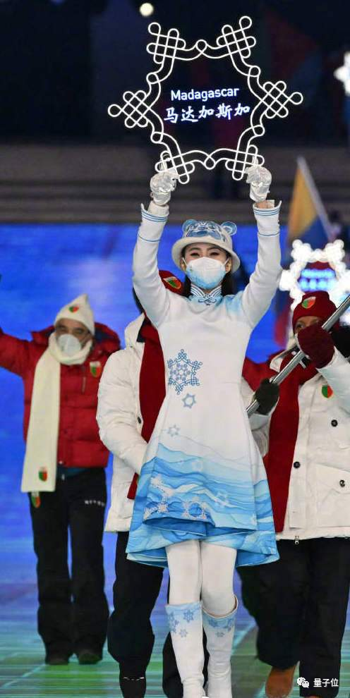 随后就是代表团入场,每个国家和地区入场时都有一个雪花引导牌。