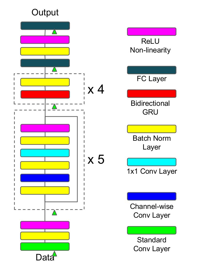 除了使用了depth-wise可分离卷积层以外,残差连接以及在每一层上都采取了批归一化的技巧对训练有促进作用,整个网络共有约500万个参数。参数太大就容易出现过拟合的问题,为了避免过拟合,作者尝试探索了数据增强和dropout两种技巧来提升系统的性能。
