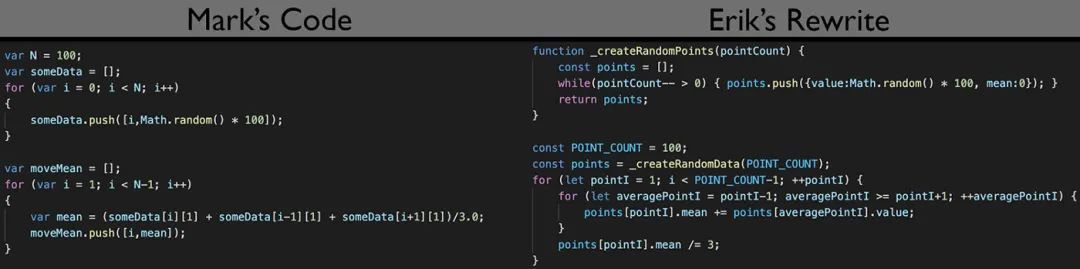 左边的代码是原来的。右边的代码是我重写的。