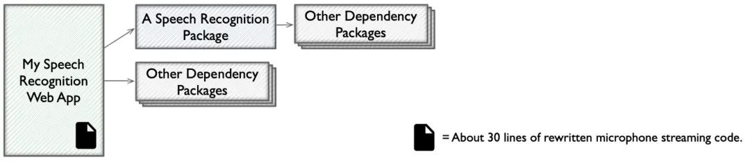 我最初是在“让它工作”的开发阶段使用 microphone-stream。它包含在一个示例 Web 应用项目中,我已经将其复制到我的项目中。microphone-stream 运行得很好,直到我升级了一个构建工具(Webpack),这破坏了 readable-stream 的构建,这是一个更高级别的依赖包。我研究了对这两个第三方库中任何一个可能的 PR 修复。不过,向仓库提交一个好的修改需要花费好几天时间。我由于种种理由而拒绝了其他的变通方案。