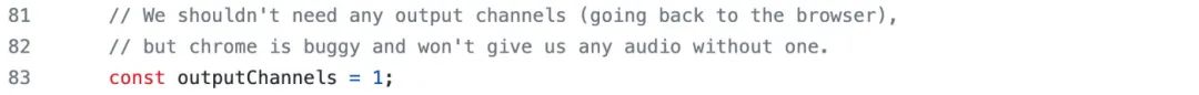 通过查看 microphone-stream 的代码,我意识到我并不需要该库的核心功能:一个 Node.js 风格的流接口。因此,我认真地重写了那些我真正需要的那部分代码,把那些我不想要的东西删除掉。