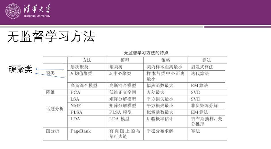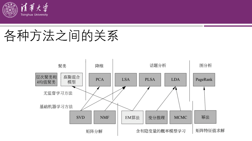 课件的最后一章总结了常见的无监督学习方法以及各种方法之间的关系。
