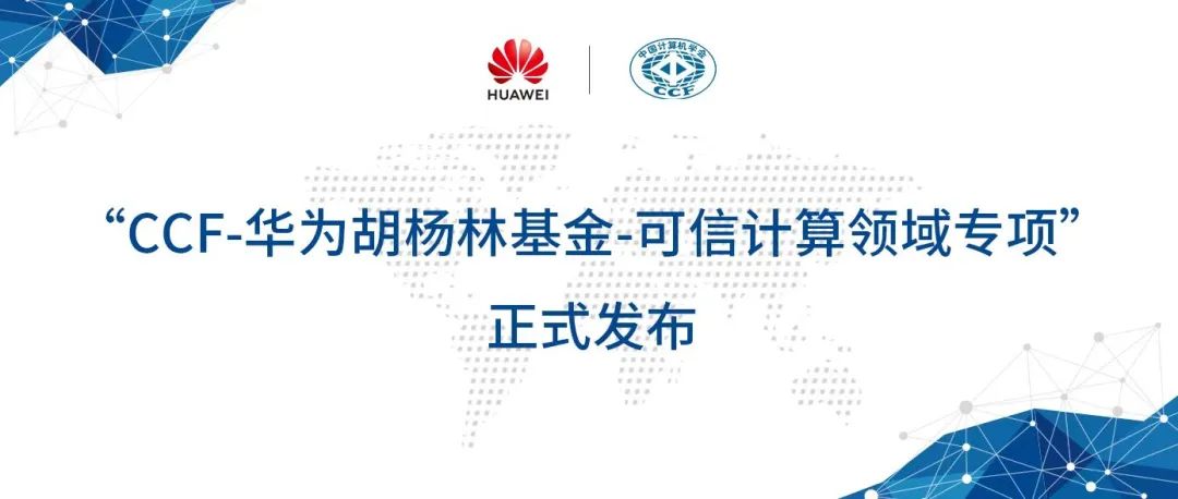 由华为可信理论&技术与工程实验室、可信云社区与CCF容错计算专委会合作的“CCF-华为胡杨林基金-可信计算领域专项” 正式发布。
