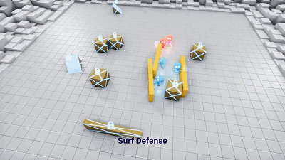 在捉迷藏游戏开始前,隐藏方(蓝)会进入准备阶段,这时搜索方(红)固定不动,给隐藏方逃跑或改变环境的机会。