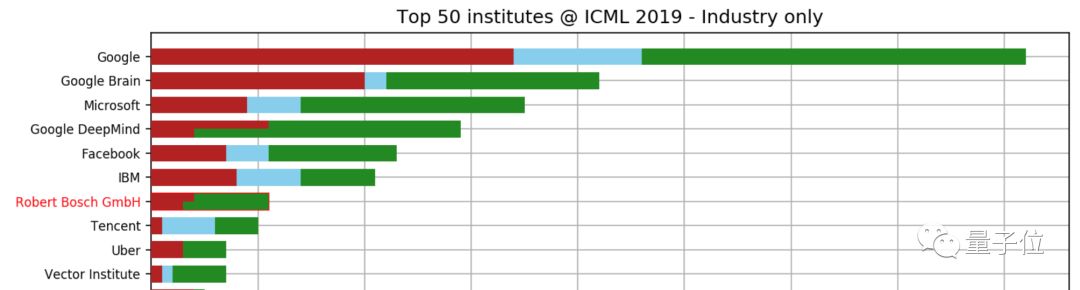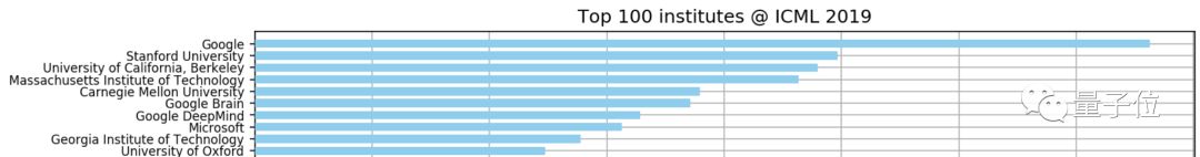 下图展示了各个公司被收录文章数量排名。条件是论文中至少有一位作者来自该机构,因此一篇论文可以出现在多个机构中。图片: