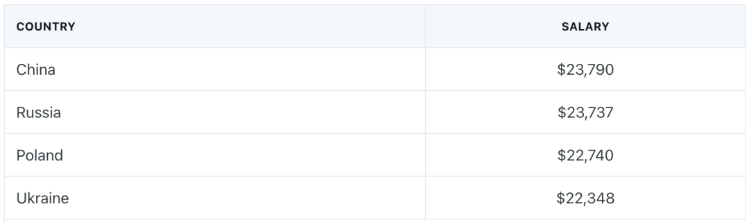 根据codesubmit数据,美国位列榜首,开发者平均薪酬为11万美元(75万元),瑞士和其他几个欧洲国家则紧随其后。