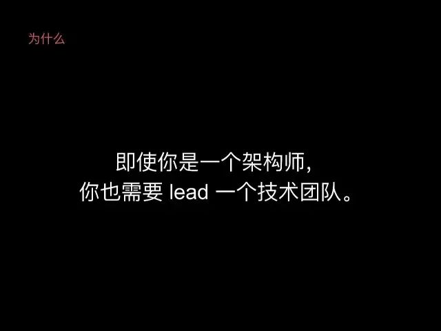 即使你是一个架构师,你也需要 Lead 一个技术团队。对大家来说,你的未来成长不管是走纯技术路线还是走非技术路线,你都需要增长自己的管理技能。