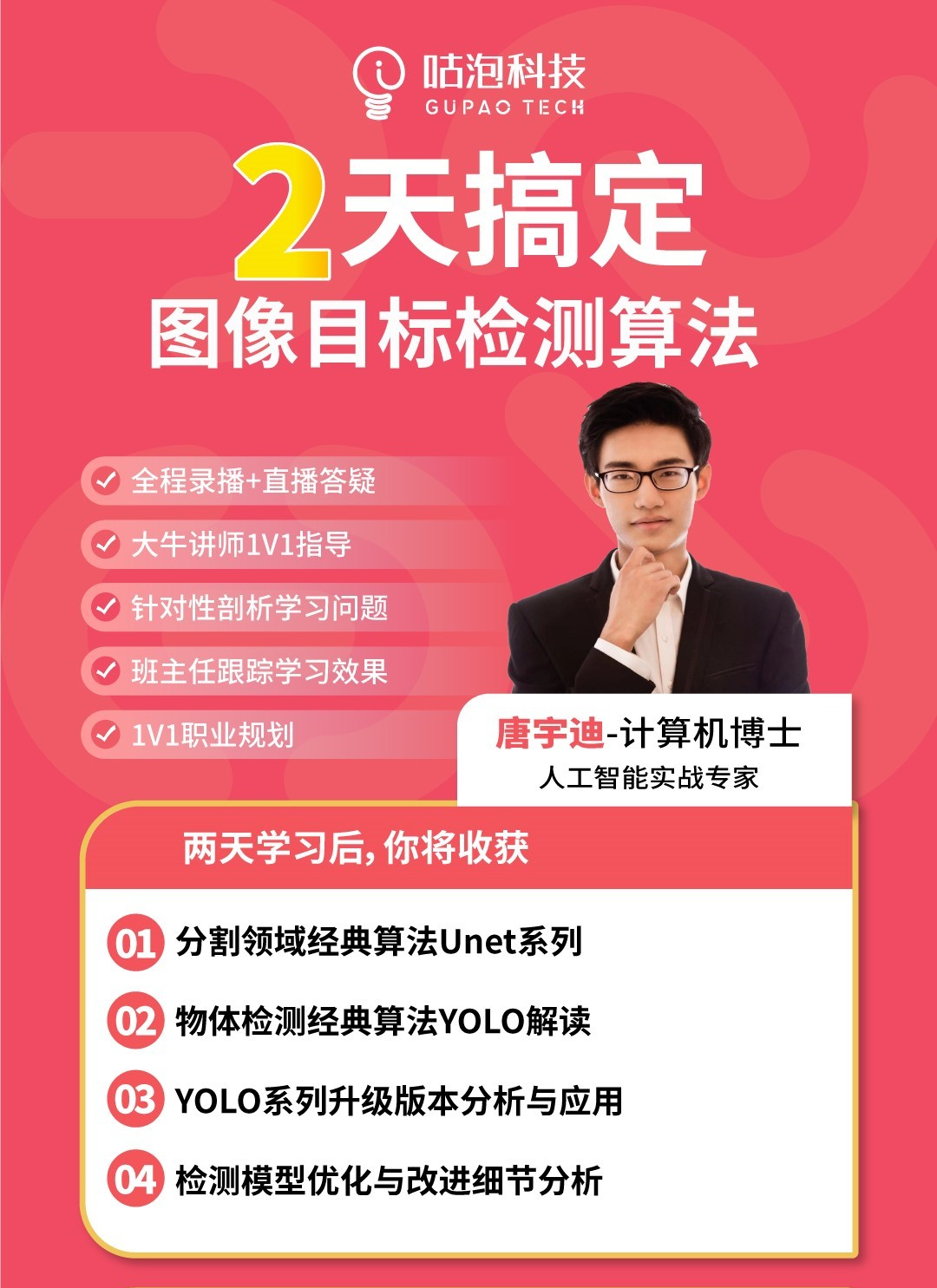 其实,YOLO也不是很难学。为了让大家对计算机视觉中的这一要领学习的更好,给大家推荐一门【图像目标检测训练营】,由人工智能实战专家的唐宇迪博士带你从深度学习到YOLO系列版本分析与应用。