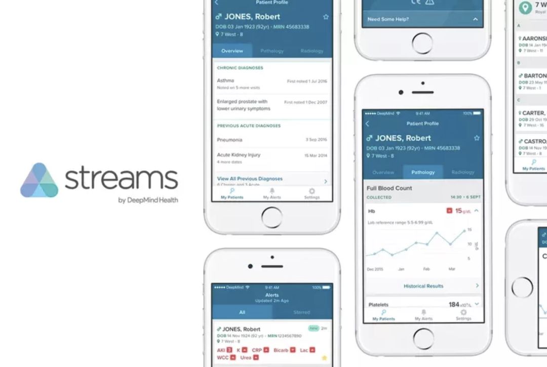 DeepMind Health 的第一款产品是一款名为 Streams 的移动应用,它最初的目的是帮助医生鉴定有急性肾损伤风险的患者,当患者的健康状况恶化时程序就会向医生发出通报。由于这项工作需要访问有关患者的敏感信息,Suleyman 建立了一个独立审查小组,其中包括优秀的英国医疗保健和技术人员。
