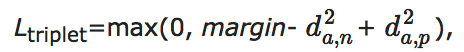 其中:δ i, j为指示函数, 表示训练集中第i个和第j个样本是否具有相同的身份, 如果相同值为1, 否则为0; di, j为特征之间的欧氏距离.该损失函数对于相同身份的样本最小化特征之间的距离, 对于不同身份的样本, 令特征之间的距离大于某一个阈值margin.