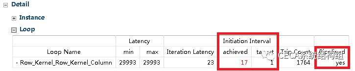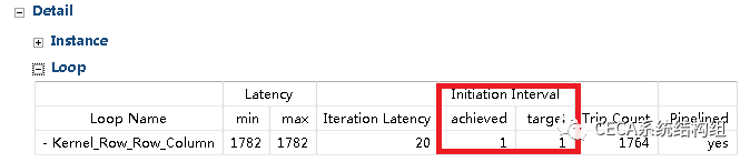 从上面的综合报告我们可以发现一个细节,虽然整个循环已经流水化了,但是 Initiation Interval 却仍然不是理想情况的 1,即:不能做到每个周期都开始一个新的 Iteration 的计算。那么问题出在哪里呢?还有没有进一步优化的空间呢?