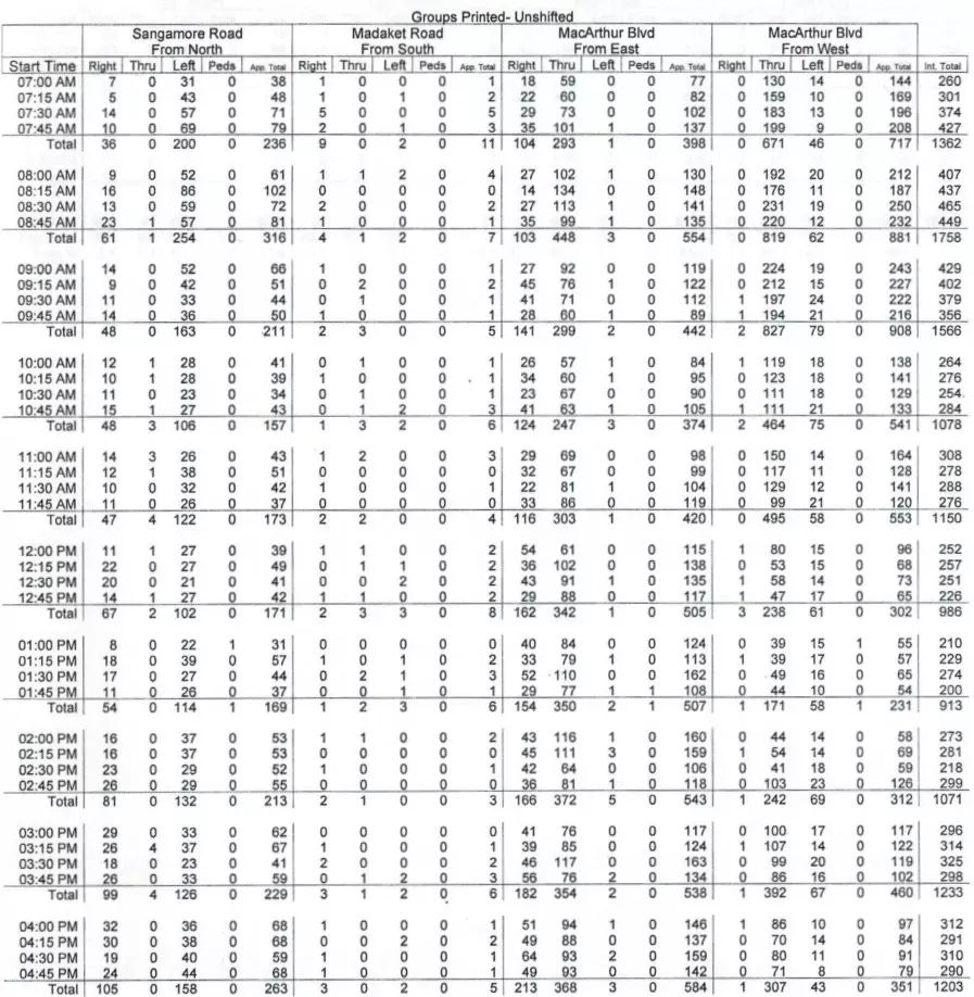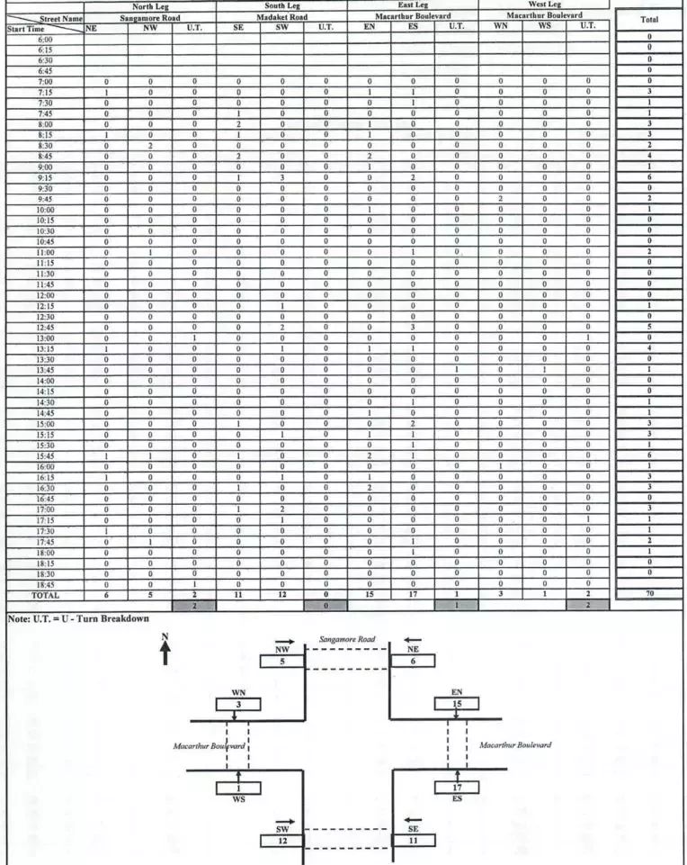 交叉口转向交通流量一般统计12小时或13小时,从早6点或早7点到晚7点。在一些流量较少的交叉口或特殊交通调查,也可统计早中晚高峰时段交通流量。