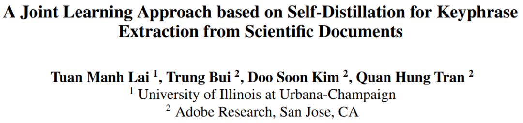 Keyphrase extraction 是提取一小组最能描述文档的短语任务。现有的大多数基准数据集都带有有限的带注释文档,使得训练复杂化的网络具有挑战性。本文提出一种基于自蒸馏思想的联合学习方法来利用大量未标记的科学文档,在 Inspec 和 SemEval-2017 两个公共基准上获得最新的结果。