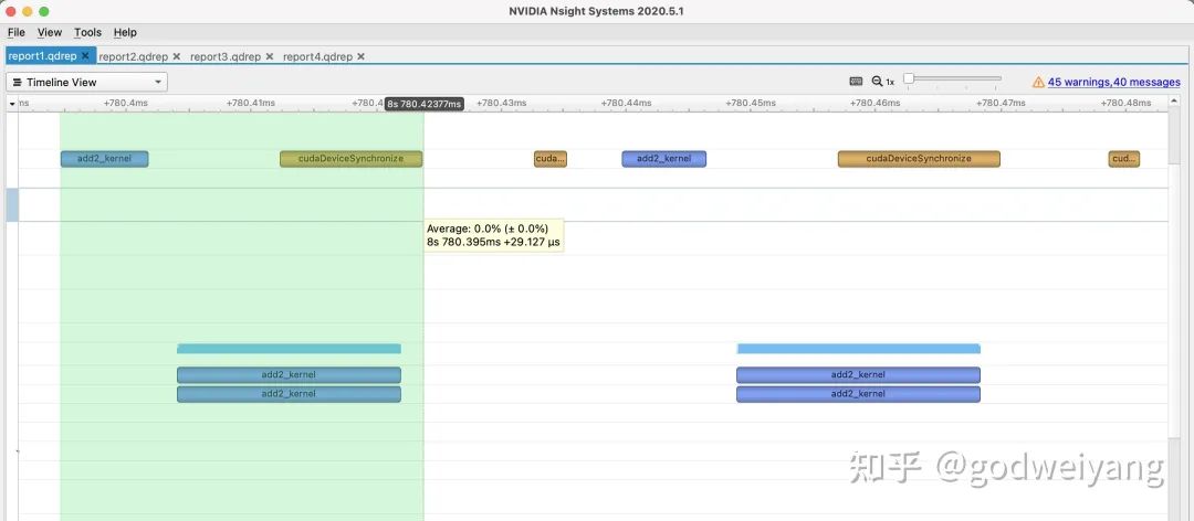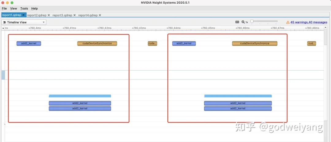 最后将生成的report1.qdrep文件用Nsight Systems软件打开,我这里是mac系统。