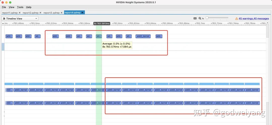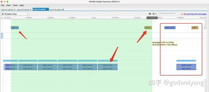这是正确的统计时间的方法,我们打开Nsight Systems,放大kernel运行那一段可以看到下图: