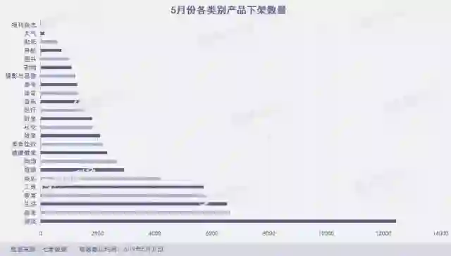 5月份,近6.8万款产品下架,游戏类产品下架数量最多,达1.2万款。