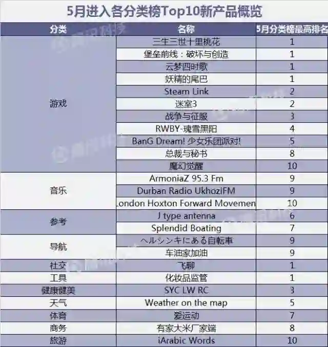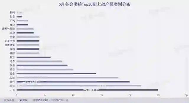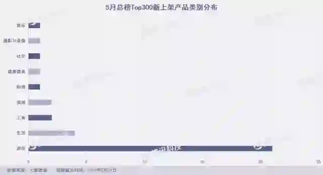 5月份,新上架产品集中在游戏、商务、生活和工具类别。
