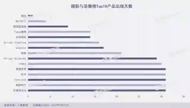 抖音短视频在摄影榜霸榜时间依旧最长,达25天。