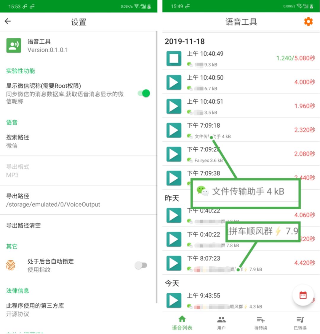 直接识别联系人:如果你的手机已经 Root,那么微信语音助手还提供了同类应用没有的「杀手锏」功能 —— 直接读取微信数据库获得语音对应的联系人。这样我们就不用在用户分类的情况下每个用户都听一条语音,然后手动备注联系人了。