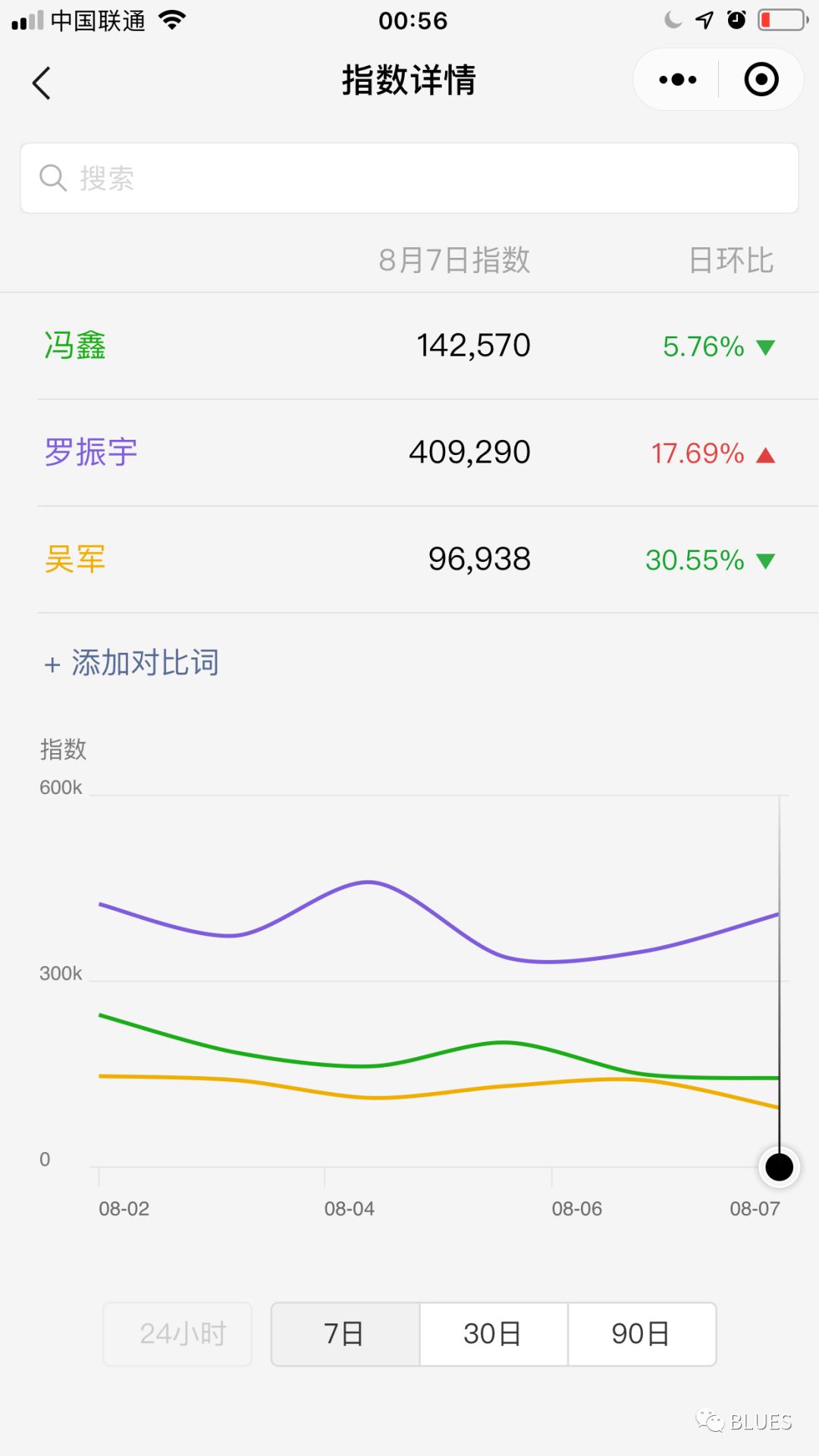 最近在我的朋友圈,有三个人很火,吴军、冯鑫、罗振宇。看下图的微信指数,8月7日,指数最高的是:罗振宇。